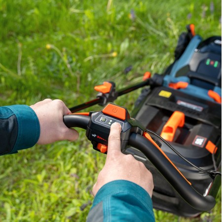 Газонокосилка самоходная аккумуляторная, 43 см, 2 аккумулятора 5Ач, двухпортовое ЗУ 2X2 40В