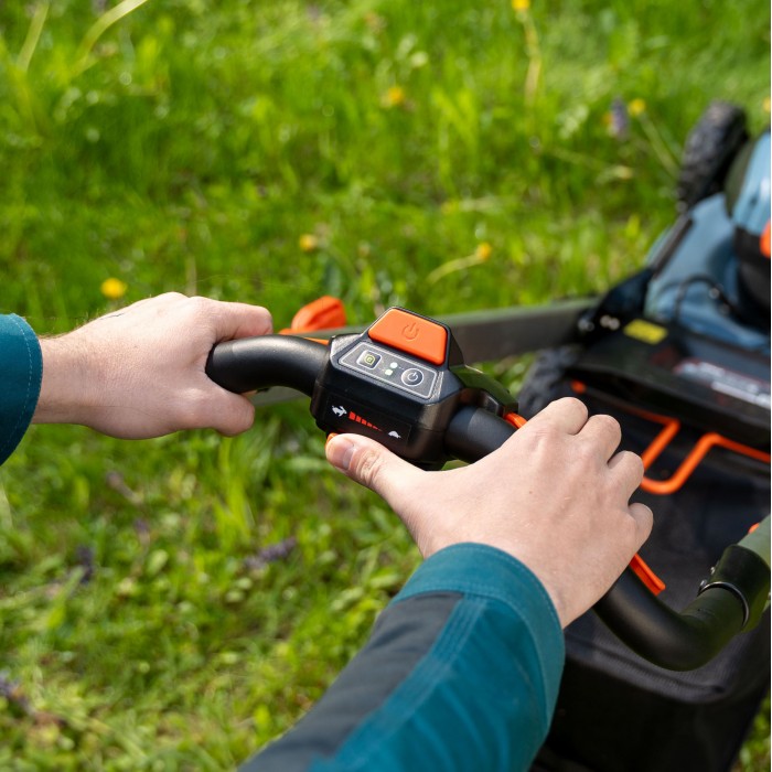 Газонокосилка самоходная аккумуляторная, 46 см, 4 аккумулятора 5.0Ач, двухпортовое ЗУ 2X2 40В