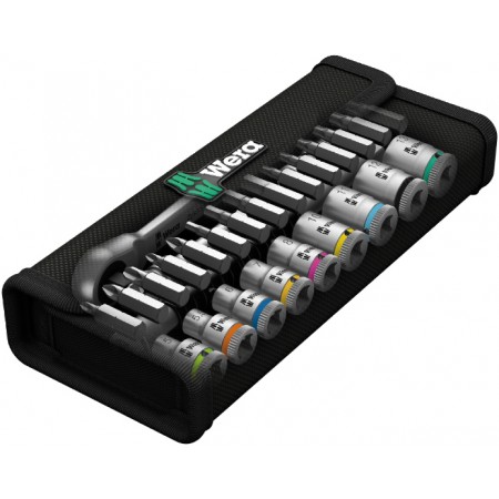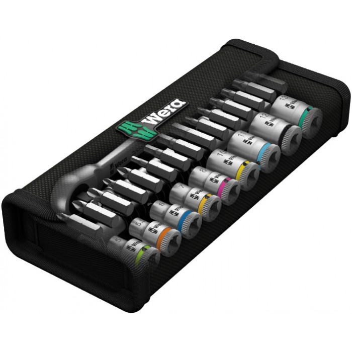 Набор с трещоткой 1/4" 28 пр. сдвижной квадрат Zyklop Metal Push серия 8100 SA 7 Wera WE-004017