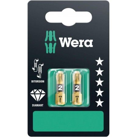 Набор бит торсионных PZ 2 x 25 мм 2 шт алмаз 1/4" C6.3 SB серия 851/2 BDC PH Wera WE-073339