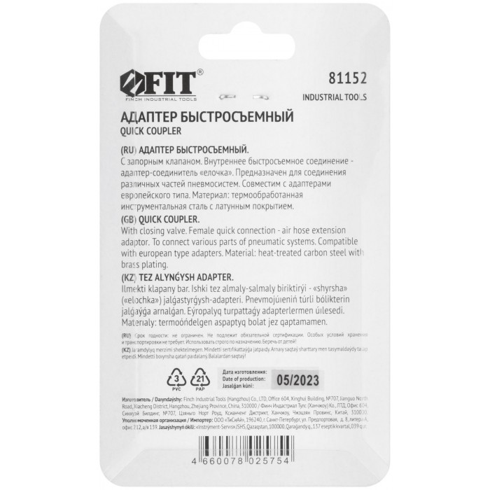 Адаптер быстросъемный с запорным клапаном с "елочкой" 6 мм (81152)