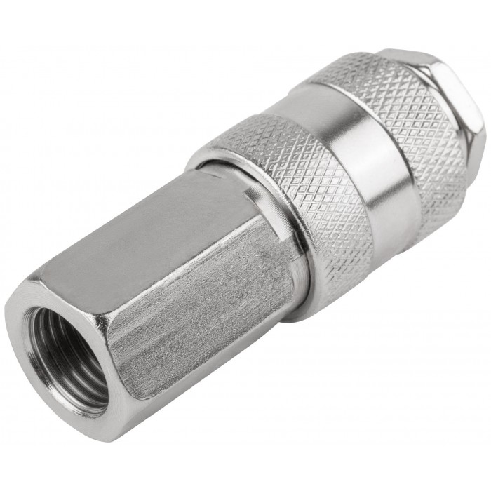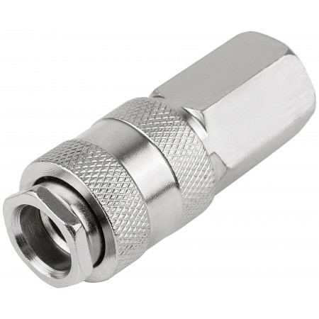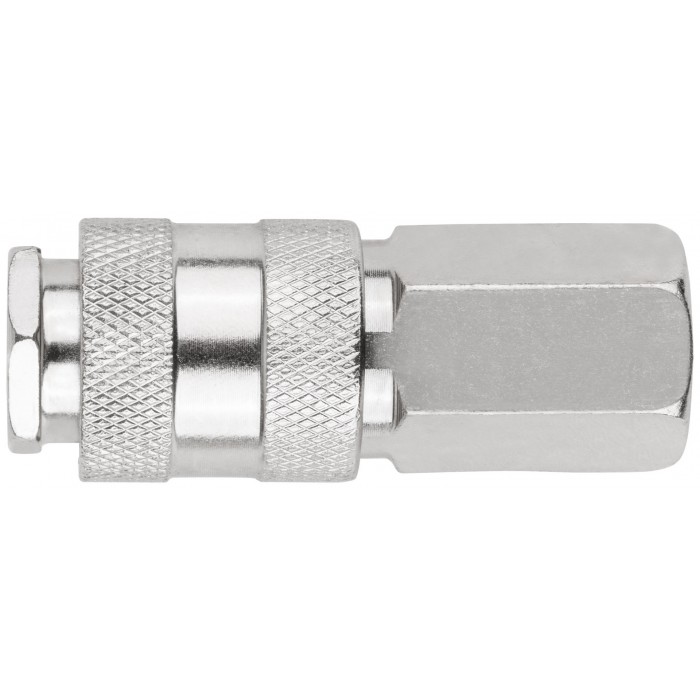 Адаптер быстросъемный. С запорным клапаном. Внутреннее быстросъемное соединение - внутренняя резьба. Предназначен для соединения различных частей пневмосистем. Совместим с адаптерами европейского и американского типа. Материал: инструментальная сталь с никелевым антикоррозийным покрытием. Упаковка: блистер.