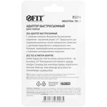 Адаптер быстросъемный с запорным клапаном с внутренней резьбой 1/4" (81246)