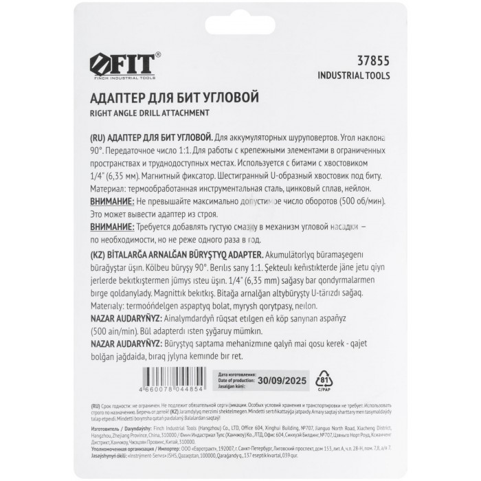 Адаптер для бит угловой металлический, нейлоновый корпус, 90 градусов (37855)