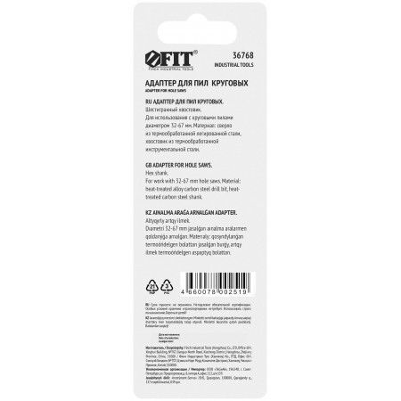 Шестигранный хвостик. Для пил круговых 36771-36798. Материал: инструментальная сталь, сверло из легированной инструментальной стали. Упаковка: блистер.