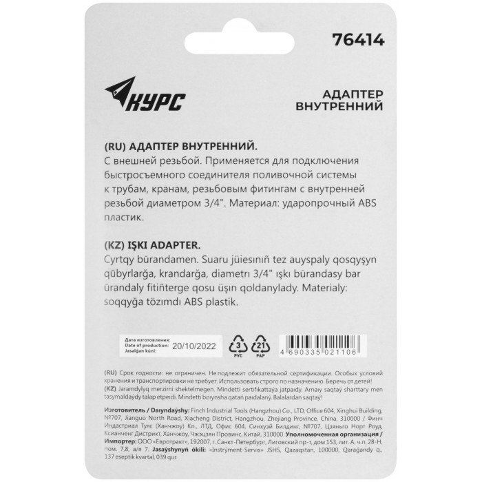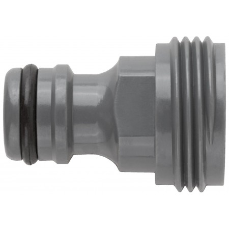 С внешней резьбой. Для быстрого соединения элементов поливочной системы с трубами, кранами, резьбовыми фильтрами, имеющими внутреннюю резьбу 3/4. Материал: ABS пластик. Упаковка: блистер.