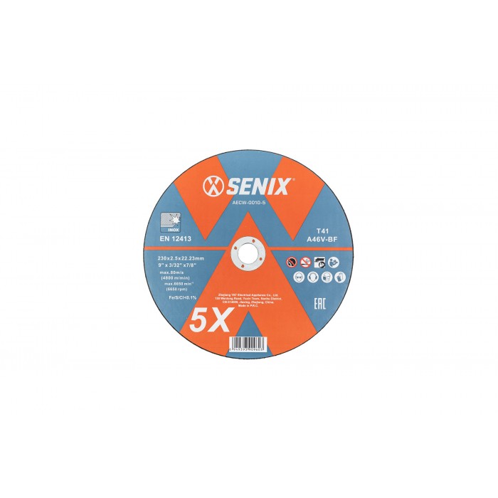 Диск отрезной по металлу и нержавеющей стали, упак 5 шт., 230"2.5"22.23 mm SENIX AECW-0010-5