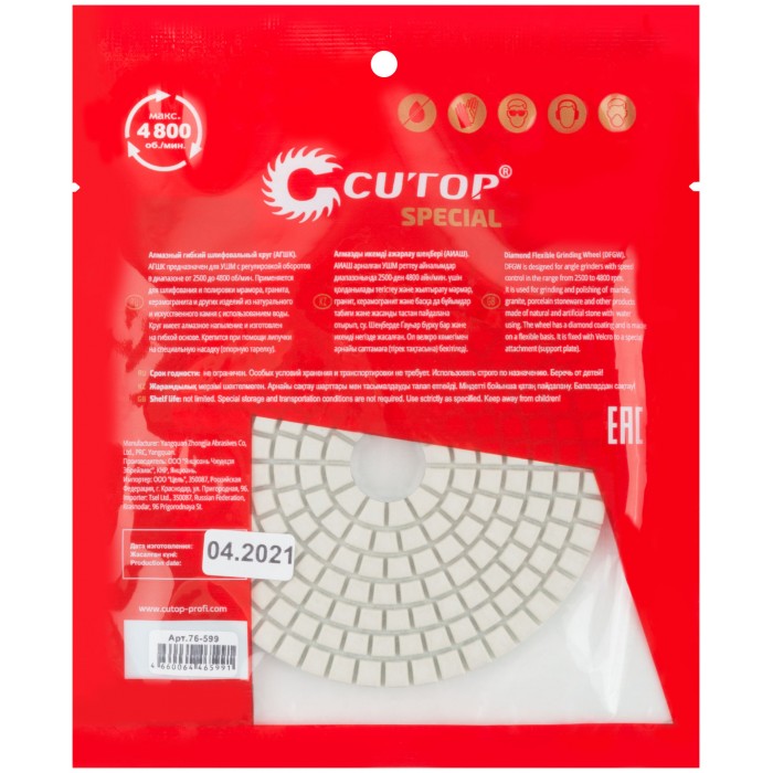 Алмазный гибкий шлифовальный круг (АГШК), 100x3мм, Р1500, Cutop Special (76-599)