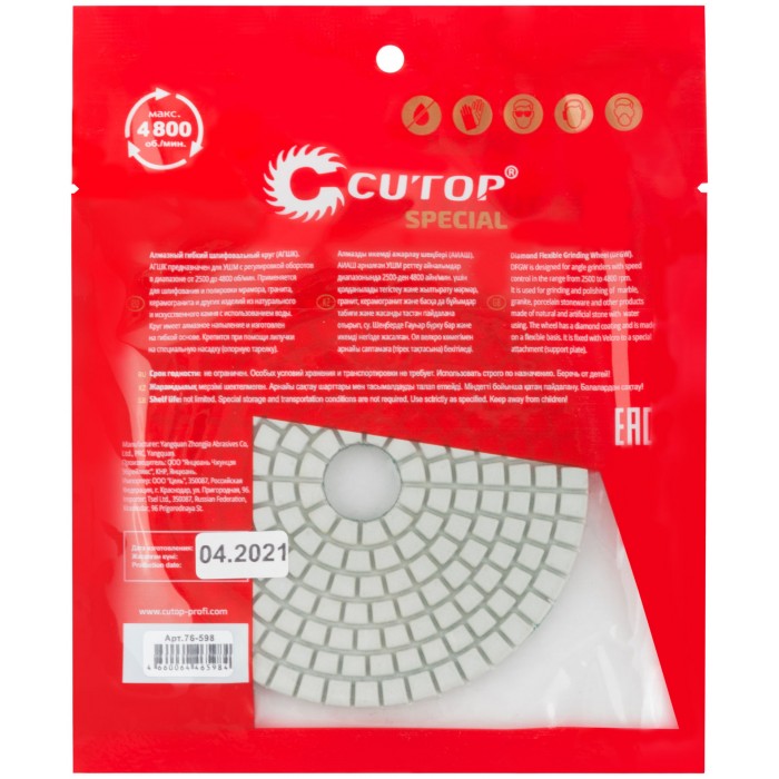 Алмазный гибкий шлифовальный круг (АГШК), 100x3мм, Р800, Cutop Special (76-598)
