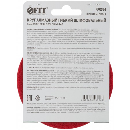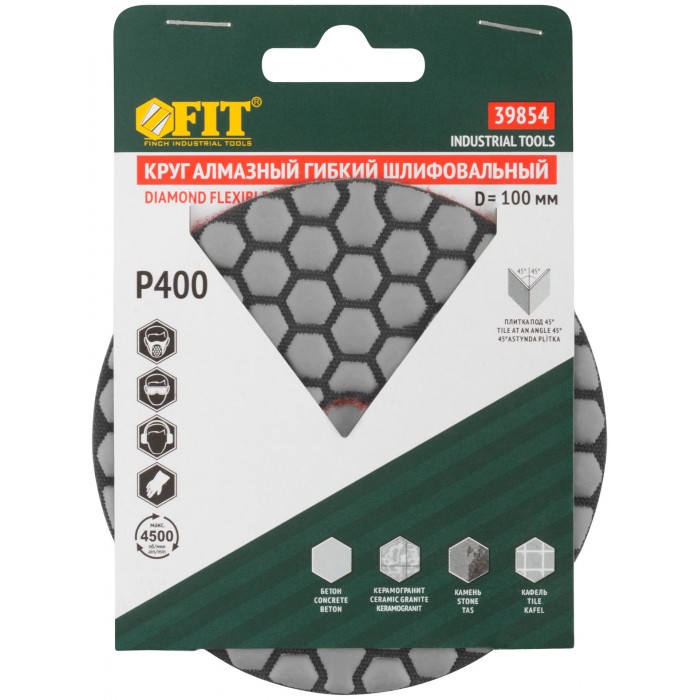 Алмазный гибкий шлифовальный круг АГШК (липучка), сухое шлифование, 100 мм, Р 400 (39854)
