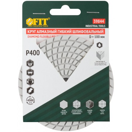 Алмазный гибкий шлифовальный круг АГШК (липучка), влажное шлифование, 100 мм, Р 400 (39844)
