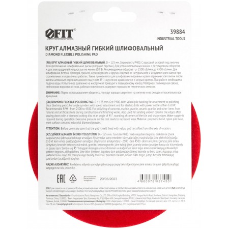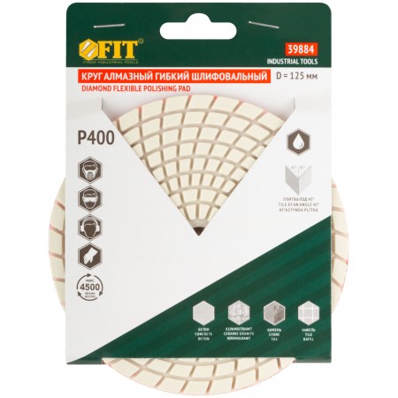 Алмазный гибкий шлифовальный круг АГШК (липучка), влажное шлифование, 125 мм, Р 400 (39884)