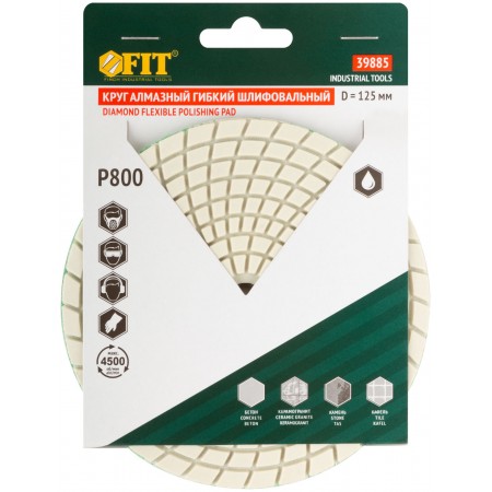 Алмазный гибкий шлифовальный круг АГШК (липучка), влажное шлифование, 125 мм, Р 800 (39885)