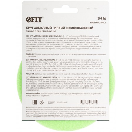 Алмазный гибкий шлифовальный круг АГШК (липучка), влажное шлифование, 125 мм, Р1500 (39886)