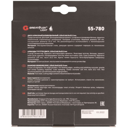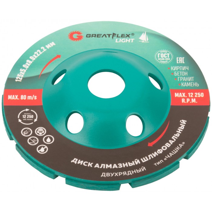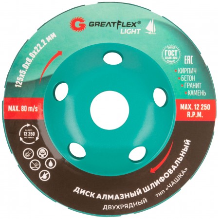 Алмазный шлифовальный диск "Чашка", двухрядный, GreatFlex Light, 125 x 5.0 x 8.0 x 22.2 мм (55-780)