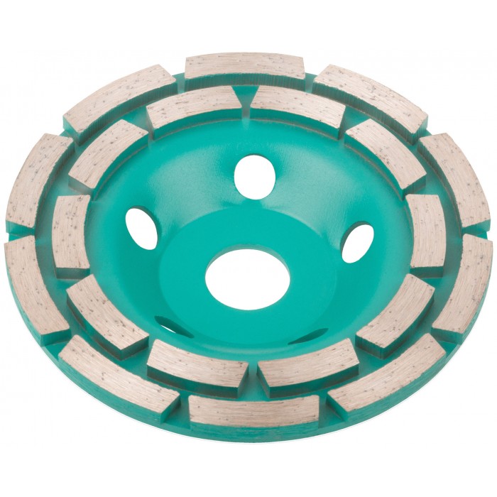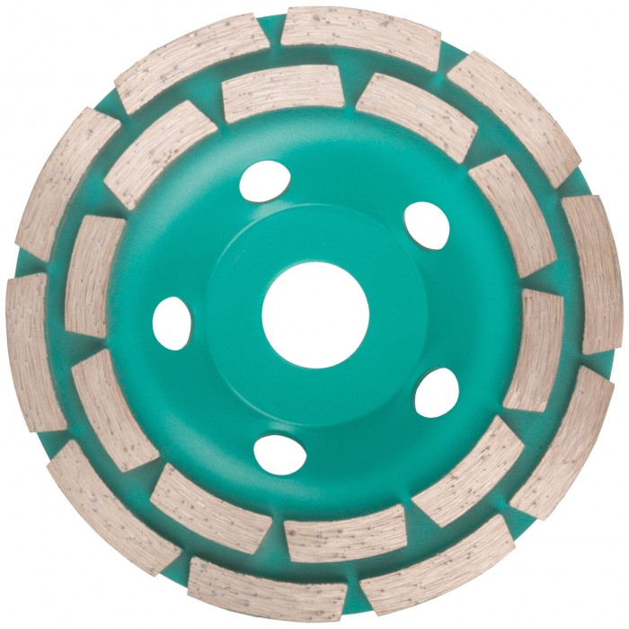 Шлифовальный. Два ряда сегментов. Посадочный диаметр 22,2 мм. Для работы по камню, кирпичу, бетону и аналогичным строительным материалам, для сухой и влажной работы. Материал: высокоуглеродистая сталь, тех. алмазы. Упаковка: картонный конверт.