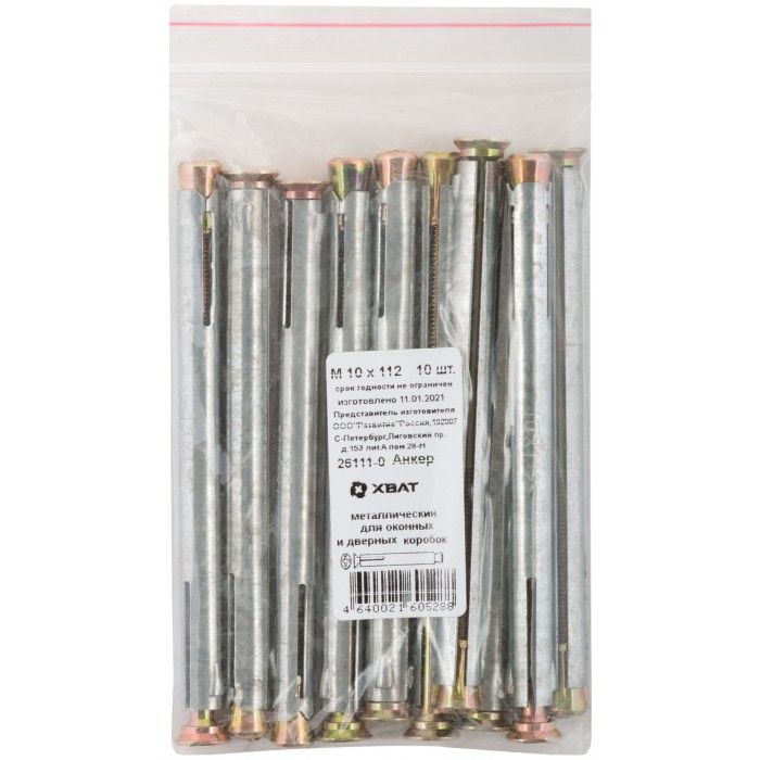 Анкер металлический для оконных и дверных коробок М 10 х 112 10 шт Фасовка (26111-0)