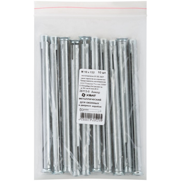 Анкер металлический для оконных и дверных коробок М 10 х 132 10 шт Фасовка (26113-0)