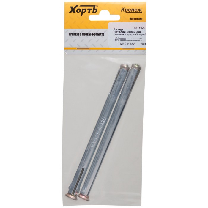 Анкер металлический для оконных и дверных коробок М 10 х 132 (фасовка 2 шт.) (26113-3)