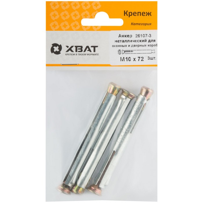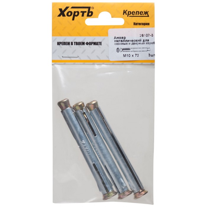 Анкер металлический для оконных и дверных коробок М 10 х 72 ( фасовка 3 шт. ) (26107-3)