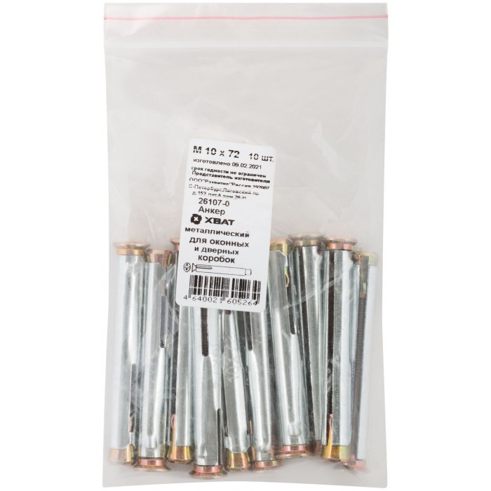 Анкер металлический для оконных и дверных коробок М 10 х 72 10 шт Фасовка (26107-0)
