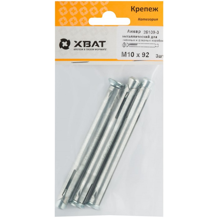Анкер металлический для оконных и дверных коробок М 10 х 92 ( фасовка 3 шт. ) (26109-3)