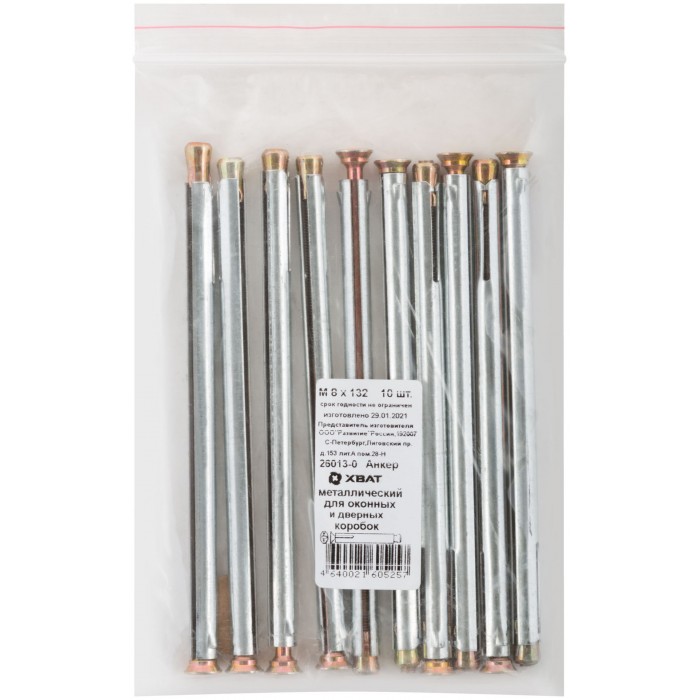 Анкер металлический для оконных и дверных коробок М 8 х 132 10 шт Фасовка (26013-0)