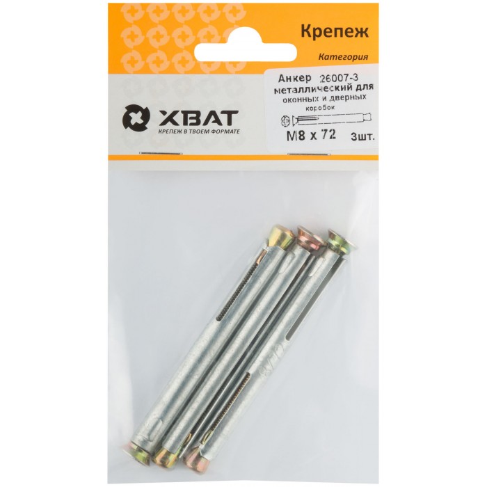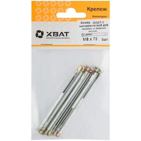 Анкер металлический для оконных и дверных коробок М 8 х 72 ( фасовка 3 шт. ) (26007-3)
