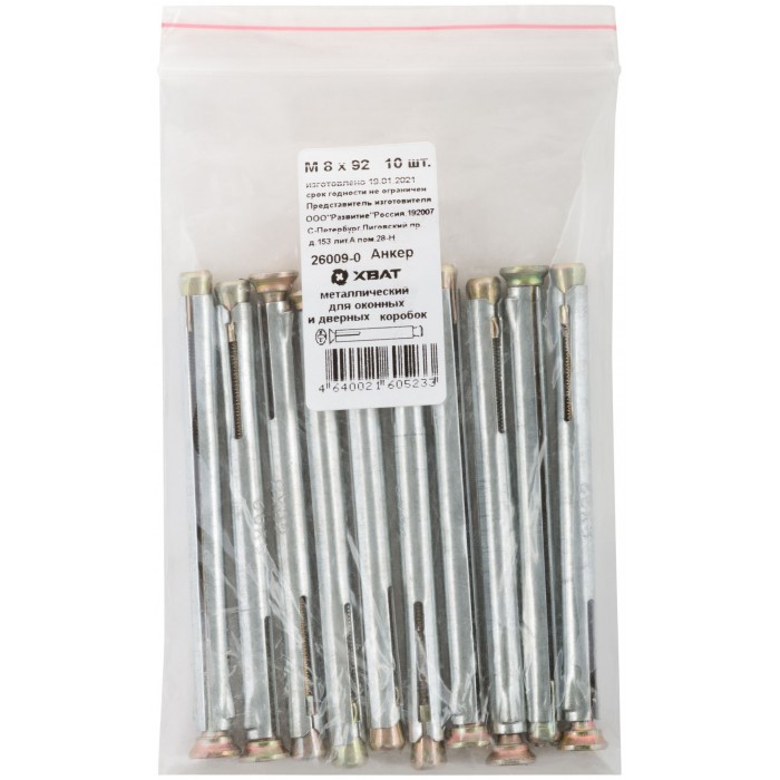 Анкер металлический для оконных и дверных коробок М 8 х 92 10 шт Фасовка (26009-0)