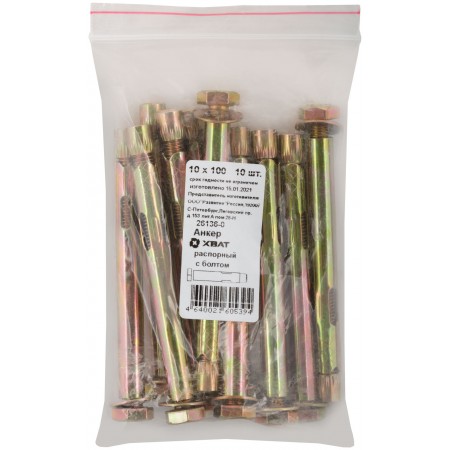 Анкер распорный с болтом 10х100 10 шт Фасовка (26136-0)