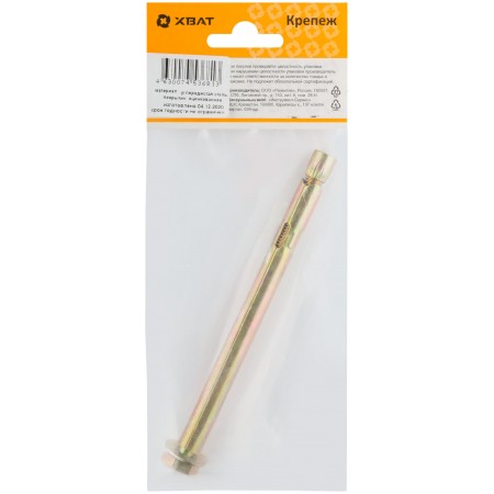 Втулка, болт и конус изготовлены из стали с электроцинкованным покрытием желтого цвета. Применяется для крепления различных тяжеловесных конструкций в полнотелых материалах (бетон, корпич, естественный камень).