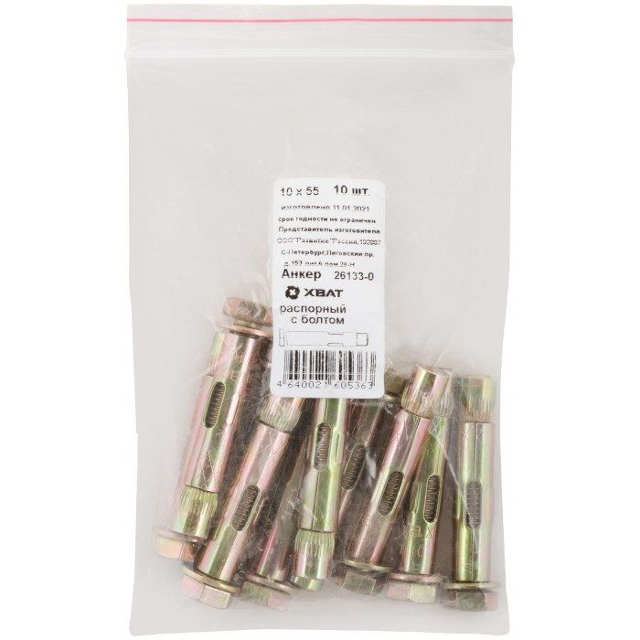Анкер распорный с болтом 10х55 10 шт Фасовка (26133-0)