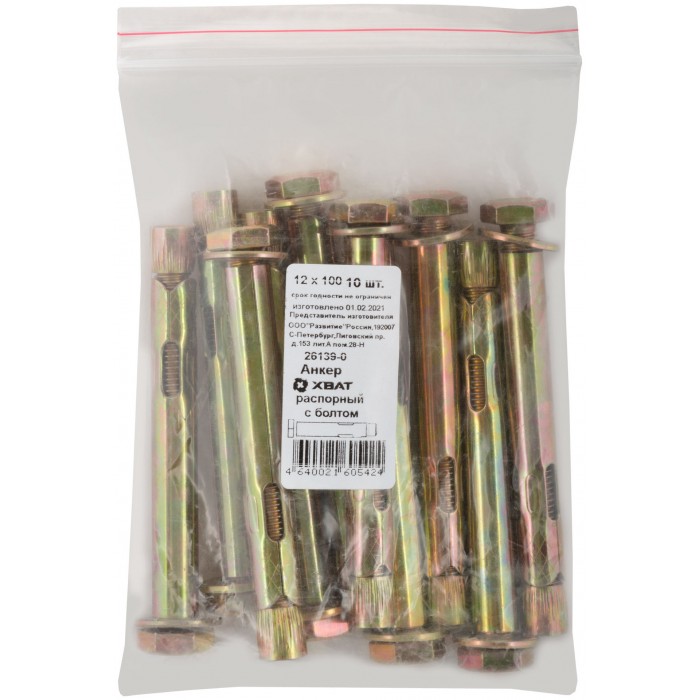 Анкер распорный с болтом 12х100 10 шт Фасовка (26139-0)