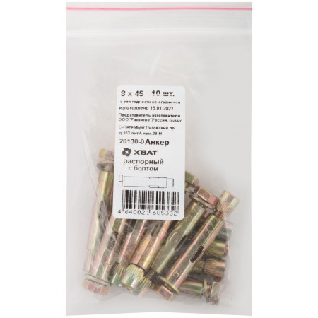 Анкер распорный с болтом 8х45 10 шт Фасовка (26130-0)