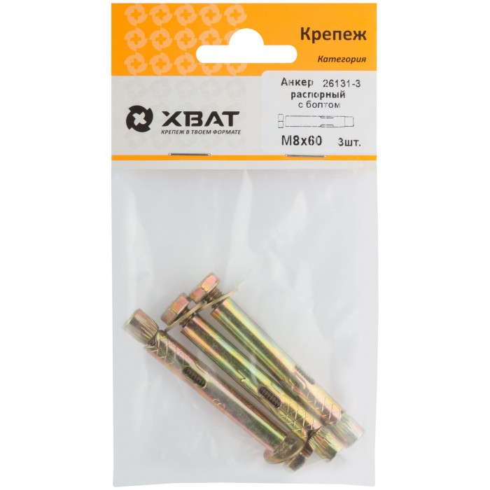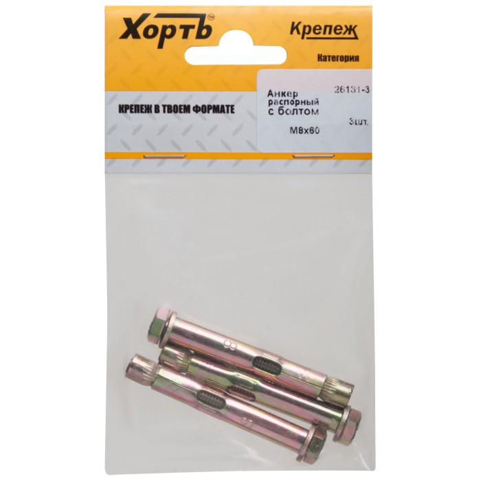 Анкер распорный с болтом 8х60 (фасовка 3 шт) (26131-3)