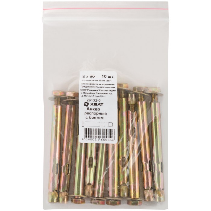 Анкер распорный с болтом 8х80 10 шт Фасовка (26132-0)