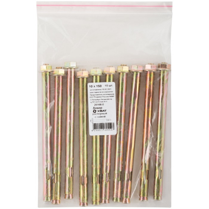 Анкер распорный с гайкой 10х150 10 шт Фасовка (26168-0)