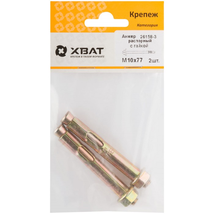 Анкер распорный с гайкой 10х77 (фасовка 2 шт) (26158-3)