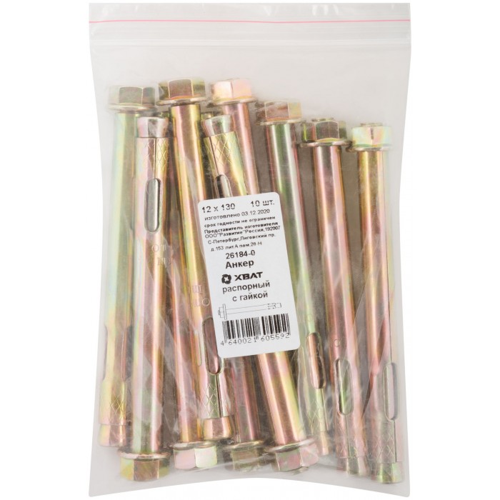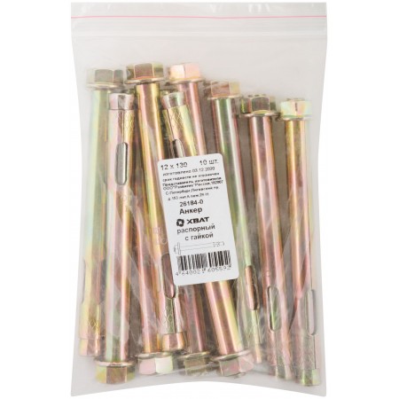 Анкер распорный с гайкой 12х130 10 шт Фасовка (26184-0)