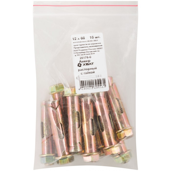 Анкер распорный с гайкой 12х60 10 шт Фасовка (26176-0)