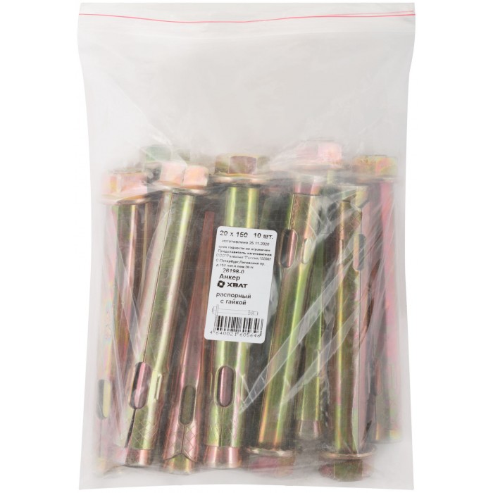Анкер распорный с гайкой 20х150 10 шт Фасовка (26198-0)