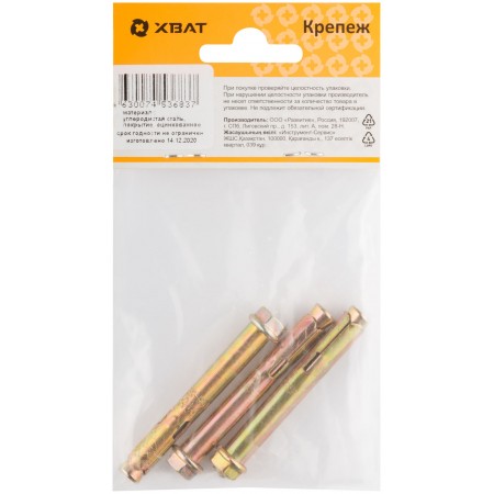 Втулка, шпилька с конусом и гайка изготовлены из стали с электроцинкованным покрытием желтого цвета. Применяется для крепления различных тяжеловесных конструкций в полнотелых материалах (бетон, корпич, естественный камень).