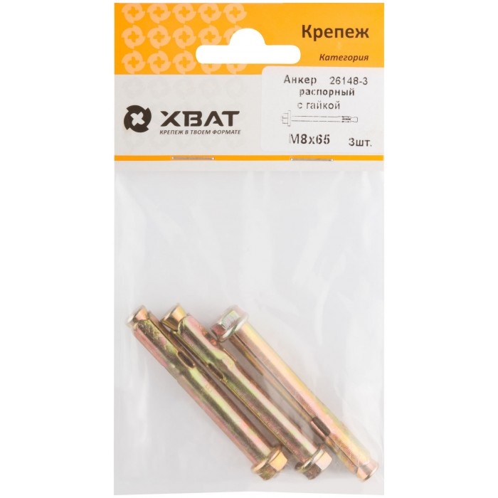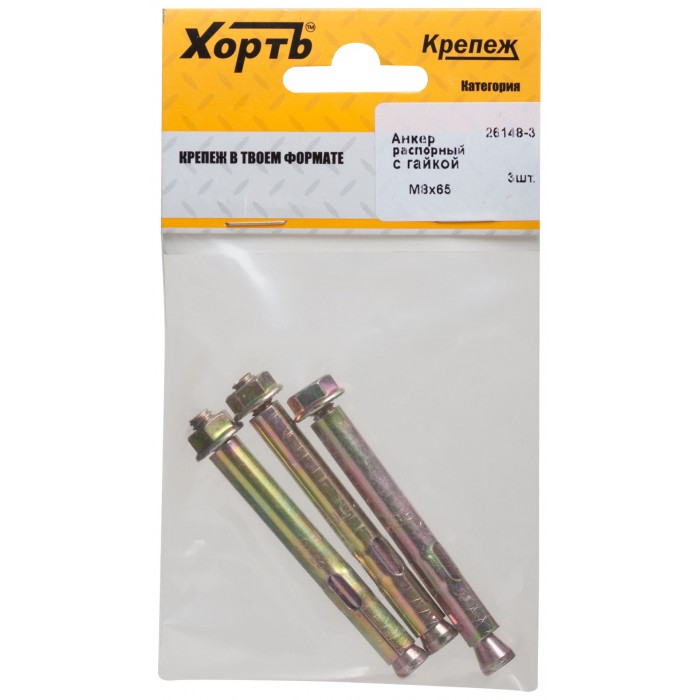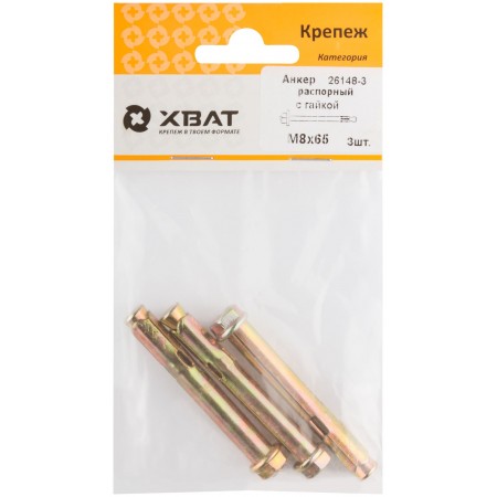 Анкер распорный с гайкой 8х65 (фасовка 3 шт) (26148-3)