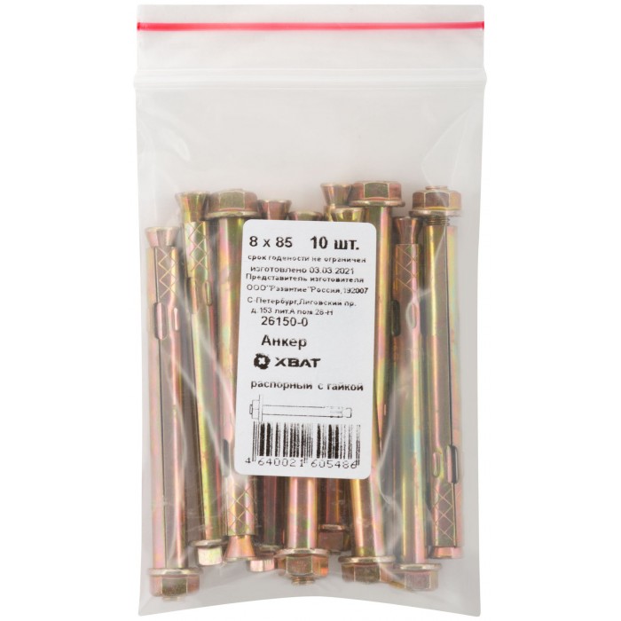 Анкер распорный с гайкой 8х85 10 шт Фасовка (26150-0)