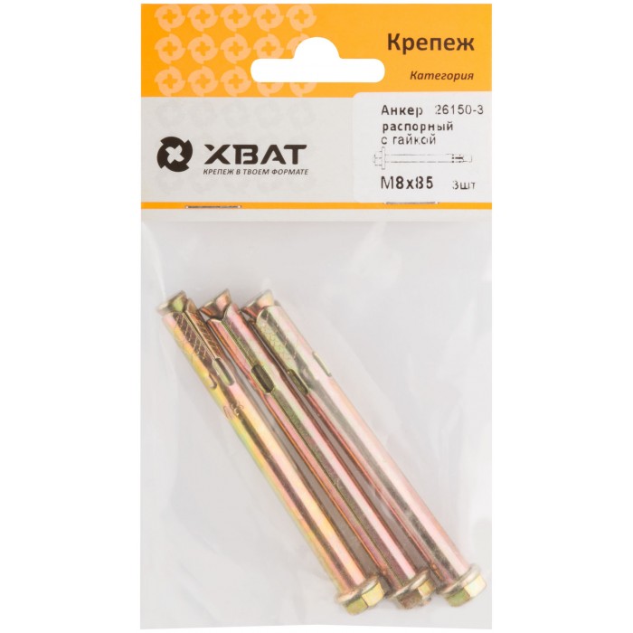 Анкер распорный с гайкой 8х85 (фасовка 3 шт) (26150-3)