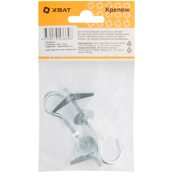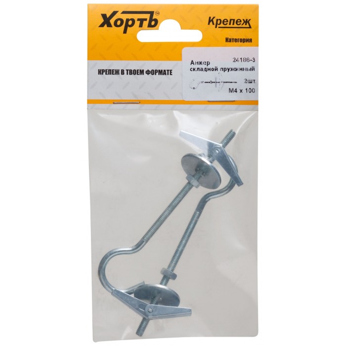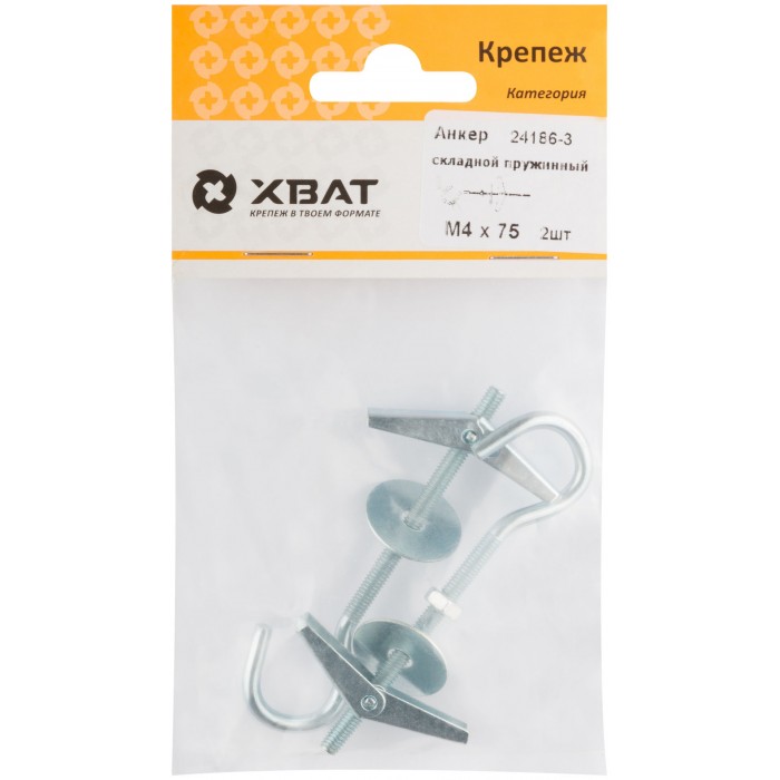 Изготовлен из стали с гальваническим цинковым покрытием, винт с крюком - стальной с гальваническим цинковым покрытием и метрической резьбой. Применяется для крепления легких конструкций к гипсокартонным плитам и другим пустотелым конструкциям.