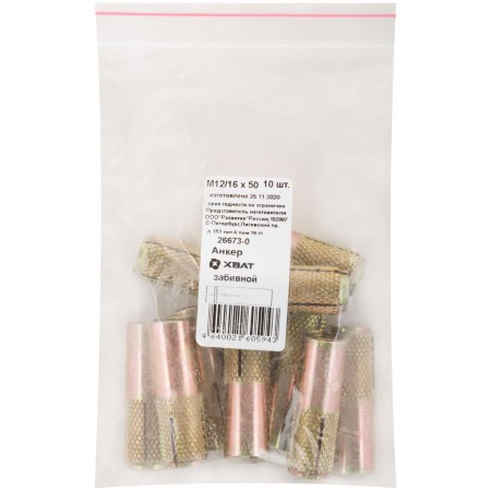 Внутренняя метрическая резьба, внутри конусообразный клин, изготовлен из стали, покрытие - электролитическое цинковое желтого цвета. Применяется для крепления различных тяжеловесных конструкций к основанию из полнотелых материалах (бетон, корпич, естественный камень).