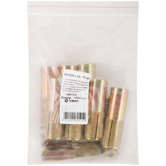 Внутренняя метрическая резьба, внутри конусообразный клин, изготовлен из стали, покрытие - электролитическое цинковое желтого цвета. Применяется для крепления различных тяжеловесных конструкций к основанию из полнотелых материалах (бетон, корпич, естественный камень).