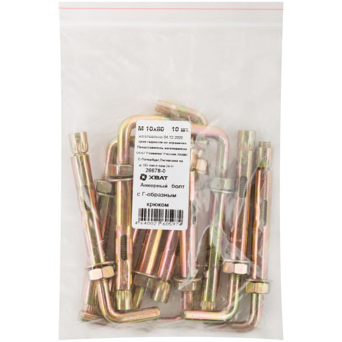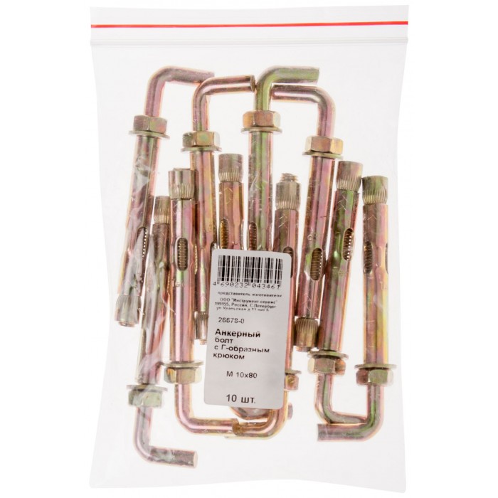Анкерный болт с Г-обр. крюком 10 х 80 10шт Фасовка (26678-0)