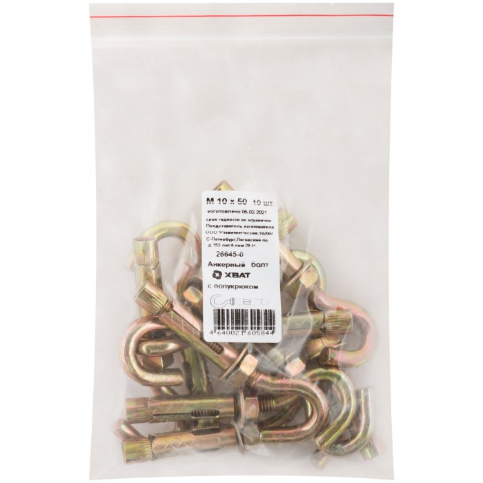 Анкерный болт с полукрюком М 10 х 50 10 шт Фасовка (26645-0)